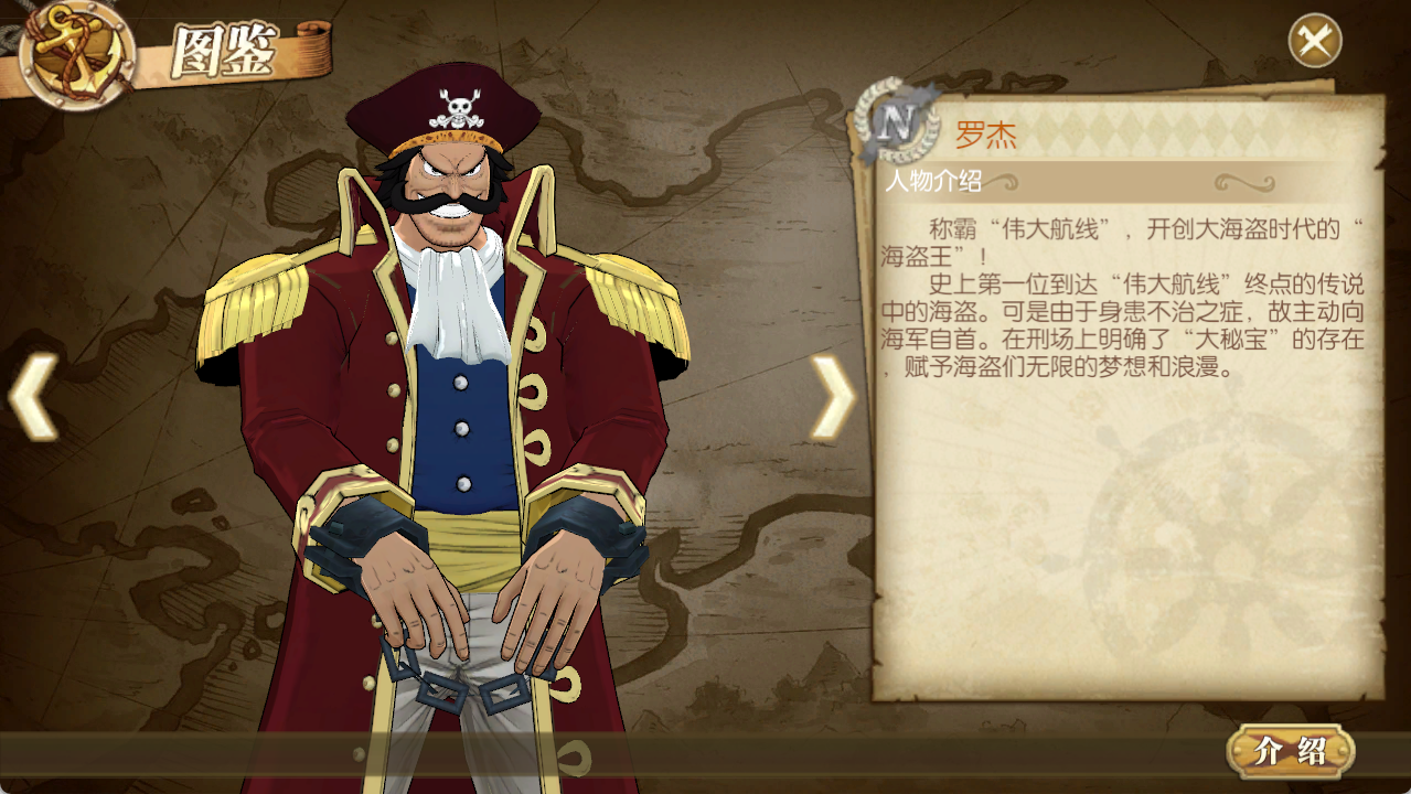 不知道大家还记不记得这个罗杰图鉴,也就是在剧情角色里面的罗杰,没错他就是本次UR罗杰的一个皮肤大海盗皮肤,但是这个是没戴手铐的哈,虽然看起来有点捞,但是他还是能够用的,如果有属性加成更香!