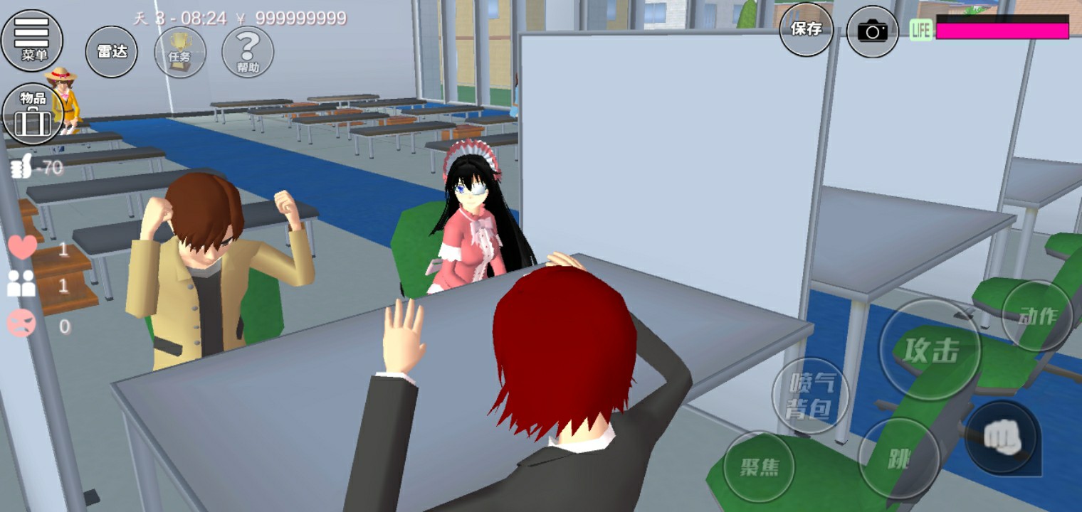 你的樱花校园模拟器里面有内置菜单吗?有的话,你可以人物无敌高伤害。之后再去打。