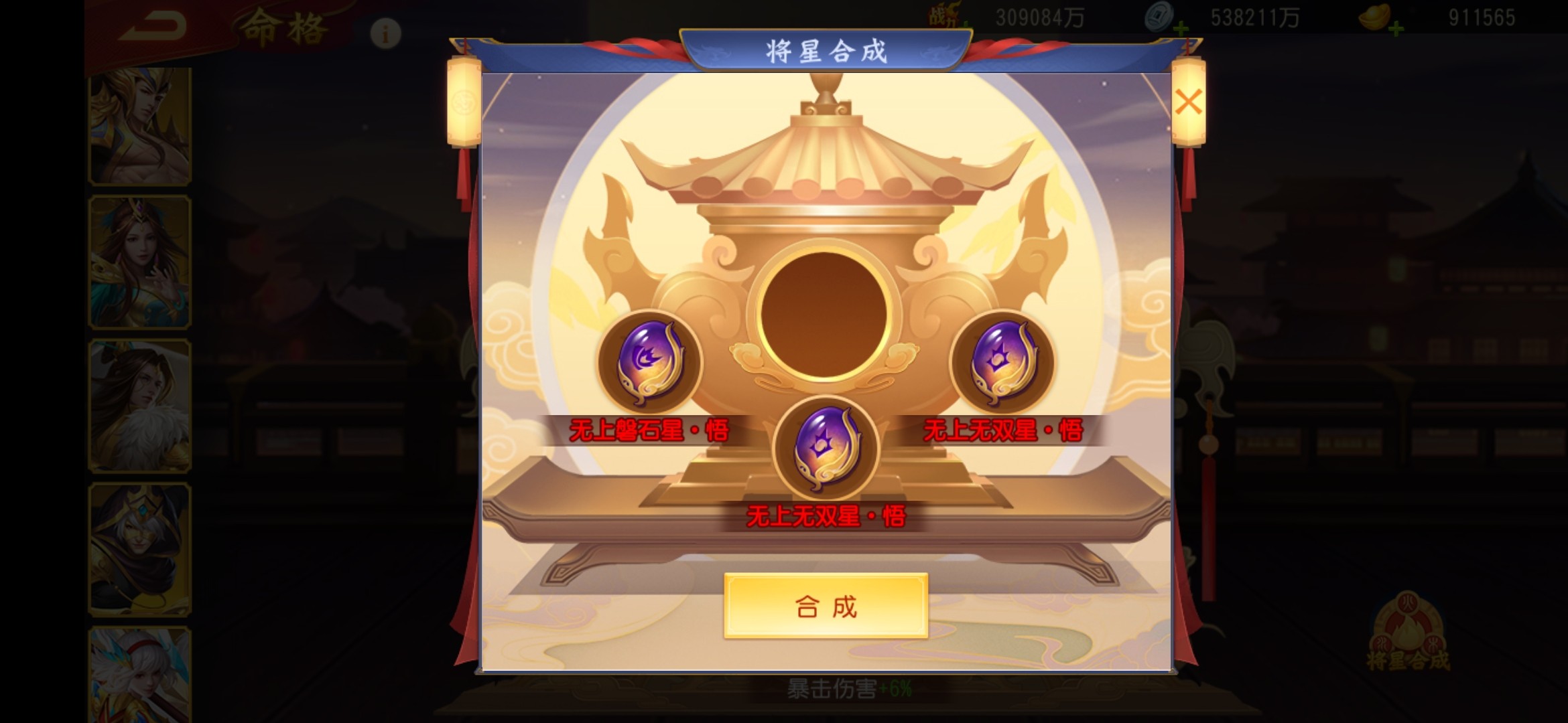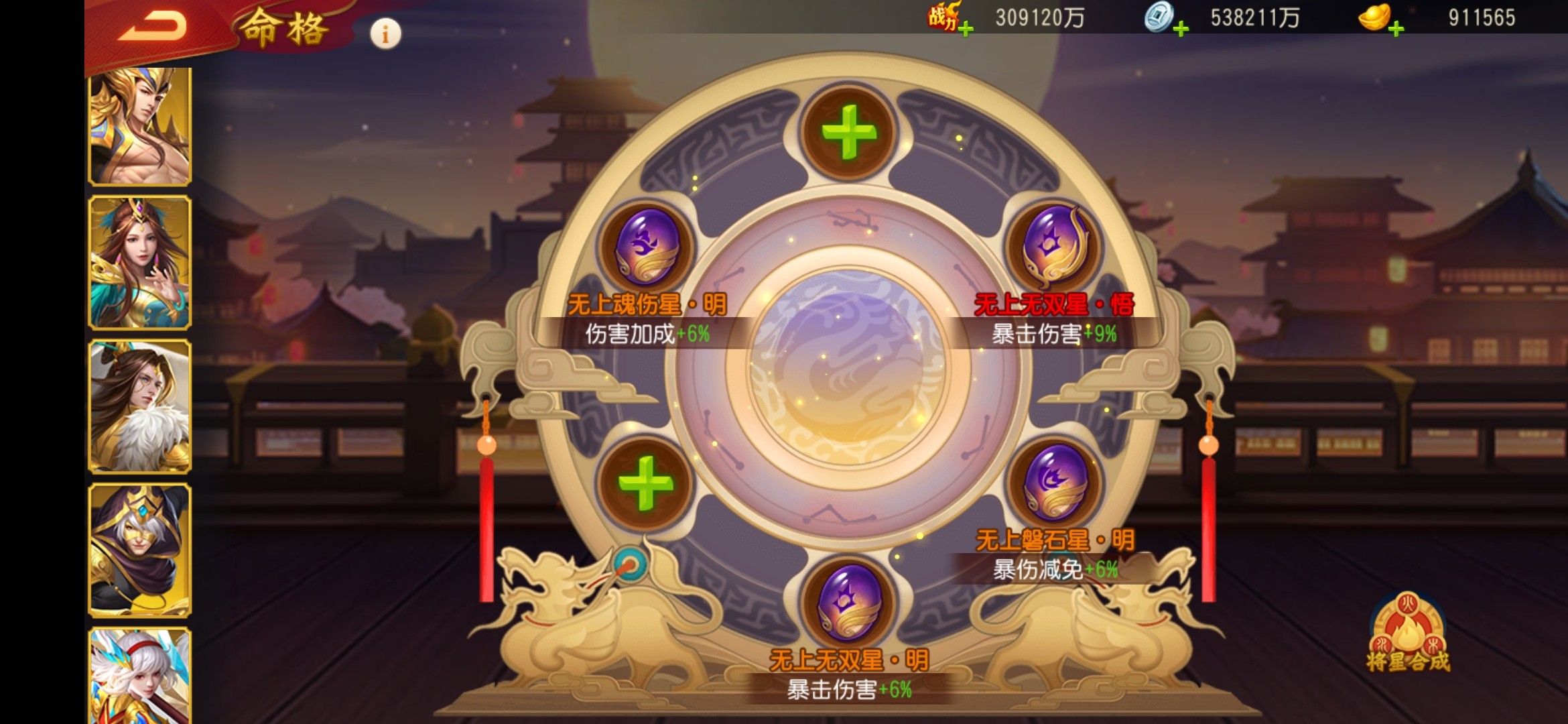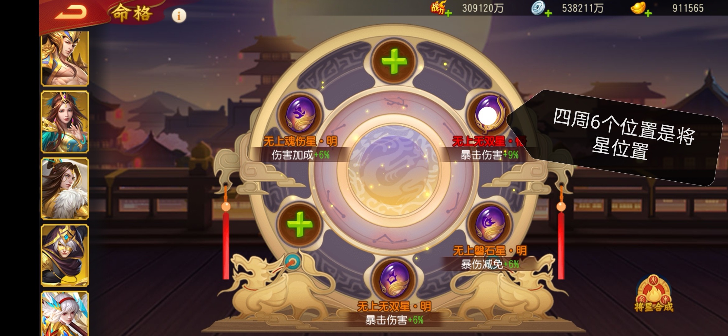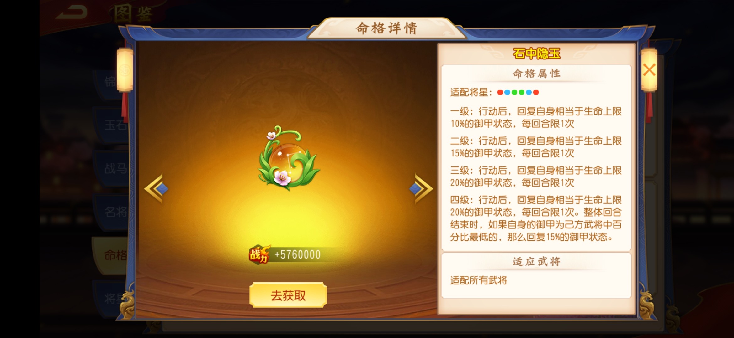 这是一个全新的玩法。目的是进一步提高单个武将各方面的属性。包括攻击伤害。防御能力。减伤。增伤。等。命格的界面会出现在锦囊的右边。