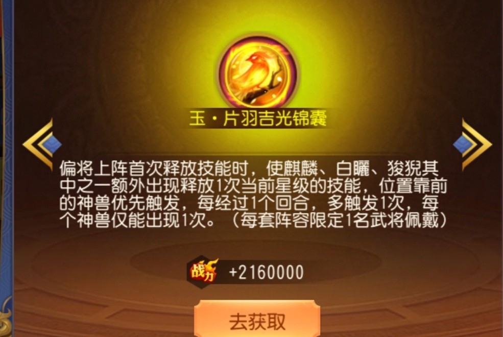技能说明提到了三个神兽和回合数。可以简单点分析。偏将第一回合就出来。那么就只能触发位置靠前的一个神兽释放一次当前星级的技能。偏将如果第二回合出现。那么就触发2个神兽技能。偏将第三回合出现。那么就触发3个神兽技能。