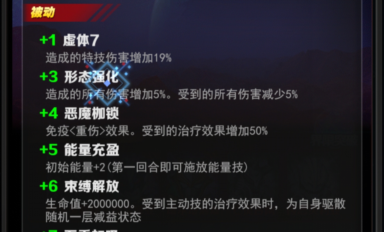 +7 每存在1名能量≥4目标,伤害增加:15%(每场限6次)