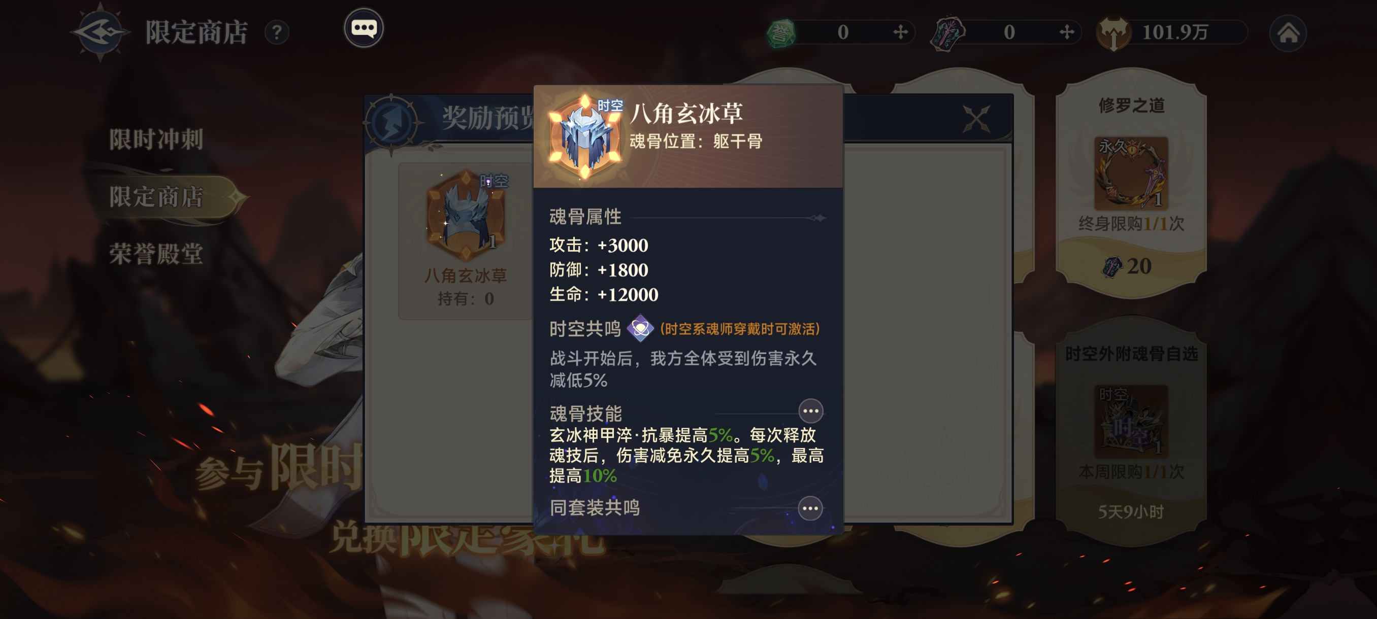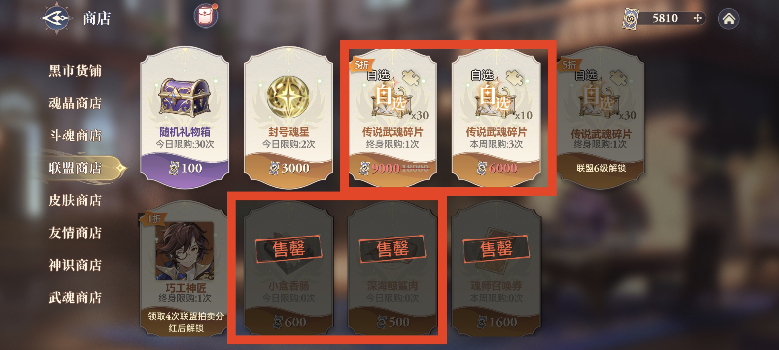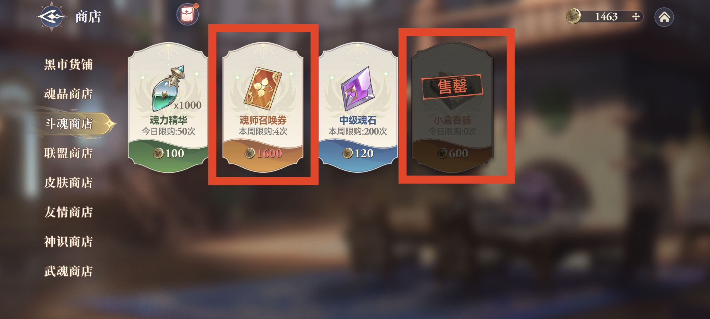 本商店中只购买所有金魂币的物品,每天推荐刷新6次,除第一次免费外,前5次只要10魂晶刷新,有几率刷出抽卡券,3天出现一次也是赚的。