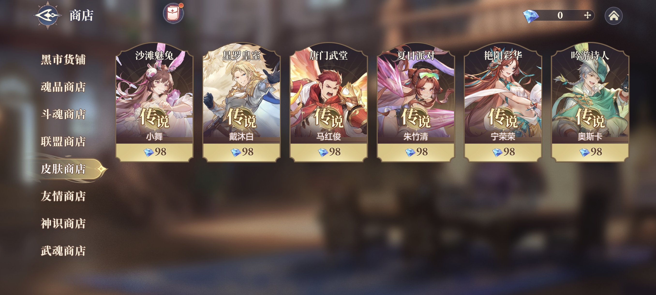 普通商店的货币为斗魂币,主要来源是竞技场给。