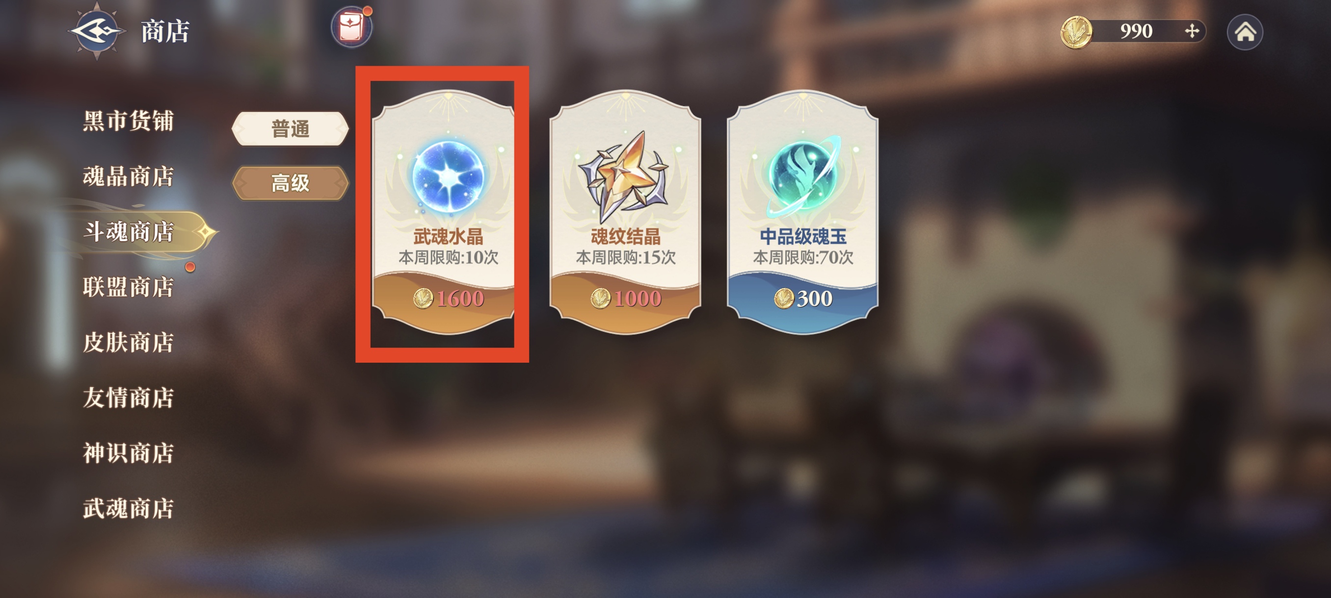 高级商店的货币为高级斗魂币,主要来源是战区竞技场给。