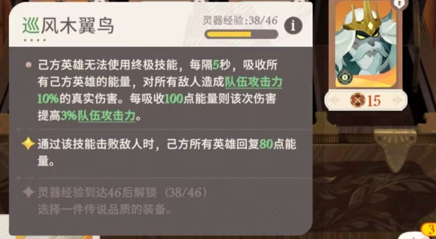 装备推荐:优先选择加攻击力或者是基础输出的,因为巡风木翼鸟的伤害和我方英雄的攻击力属性有直接的关系,攻击力越高,造成的伤害也就越大。