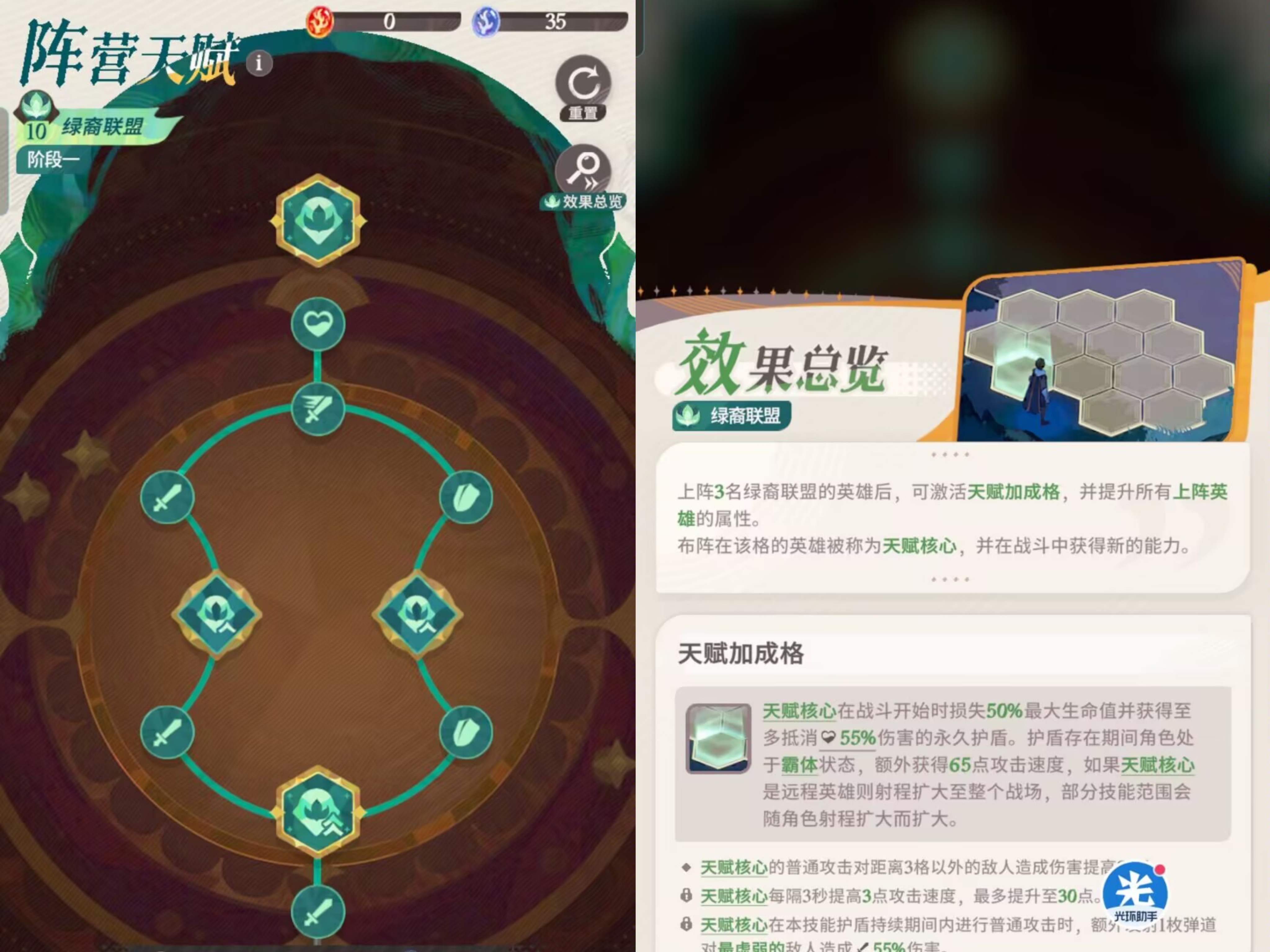 ②【阵营天赋】分为四大阶段,越往后加成的天赋效果和属性就越强力。