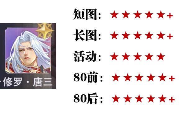 那么咱们的强度评级会分为五大部分,而每个部分的评级星数则按照以上标准来进行考量:(针对短图/长图的强度评级维一会更倾向于游戏中后期的表现,同时也会结合各种类型玩家的综合反馈,例如小氪、中氪和重氪玩家手中的魂师表现/上场率都会综合考量)