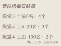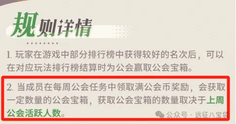 这个可能会有部分玩家不清晰 公会宝箱 有一部分来自于大家的周任务完成情况 所以一般公会管理为了让大家多打箱子 会设置公会箱子分配规则为 “按活跃度比例分配” (活跃度挂钩周任务完成情况 这个下面说) 不过这部分获取数量没有具体的数据 只写说跟上周公会活跃人数有关 上周公会活跃人数怎么定义都没讲… ⭐各排行榜玩法 根据公会成员在各玩法排行榜中的排名 奖励一定数量的公会箱子 分每日结算和每周结算 *每日结算 日结的有巅峰竞技场、 竞技场(日结榜)、迷梦 其中迷梦未明确是服务器榜还是战区榜 但看档次的设置,应该是服务器榜 反正用的都是同一个伤害成绩![]()