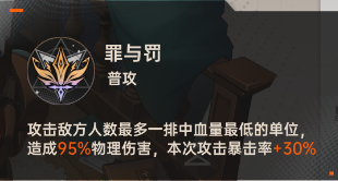 路明非的技能也可以算作是一个越打越强的横排群攻技能,随着暴击伤害次数的增多,路明非就会和路鸣泽逐渐融合变神为皇(加暴击爆伤和附带伤害),但在开局的时候伤害就有点低了,可如果是暴击3次后融合100%的路明非那就是一个技能秒天秒地秒空气了,随后因此获益的平A伤害也够看了。