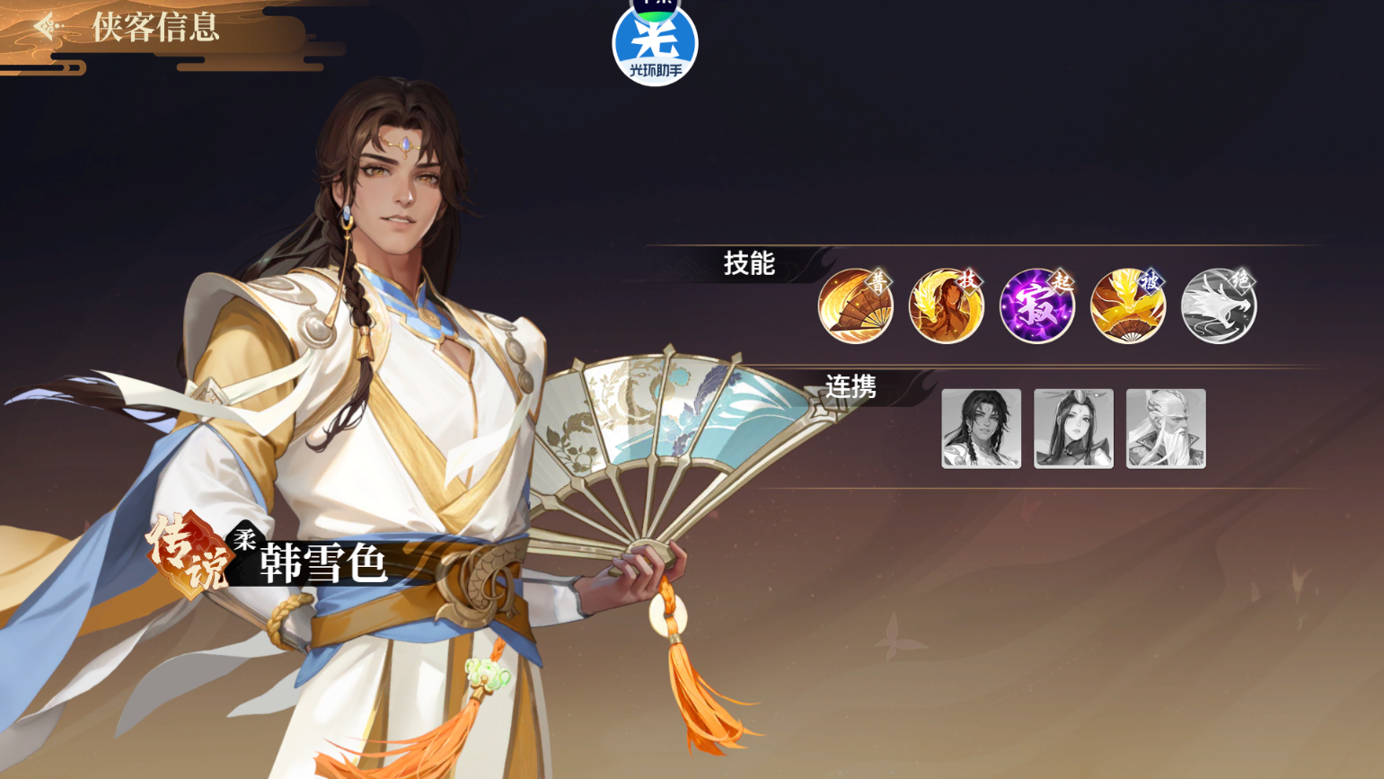 韩雪色拥有强大的多段攻击能力,并能叠加【戏风】效果,提高自身攻击力。与马蚕娘(至少1绝)配合,韩雪色的【戏风】叠加将使她的输出能力更加恐怖,配合【群星领域】的被动效果,让韩雪色开局快速叠【戏风】,第二次绝技出手就可以召唤金龙轰炸,缩短了韩雪色的PVP爆发时间。