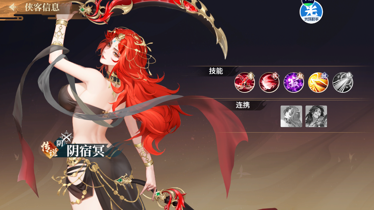 提高自身攻击力,首次触发【星落】后,使后排侠客的攻击增伤提高,并驱散目标增益效果。