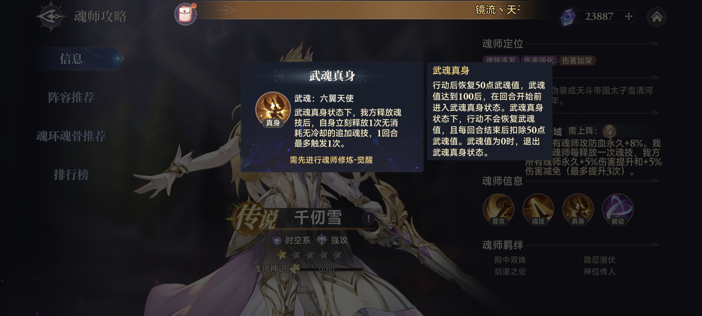 武魂真身是千仞雪最核心的机制!真身状态下,我方每回合首次施放大招后,千仞雪都会无消耗用大招进行追击。