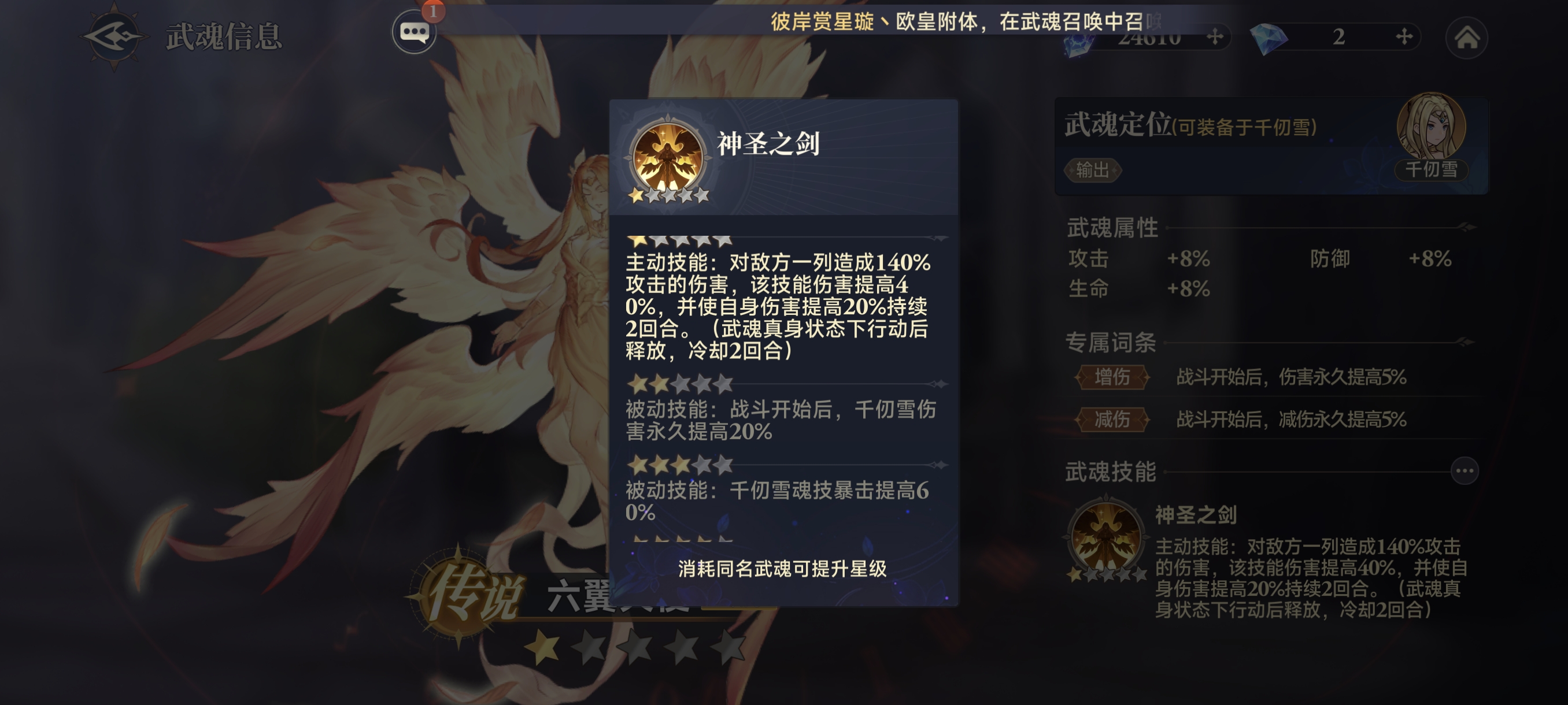 二、专属武魂-六翼天使1星,武魂技-神圣之剑