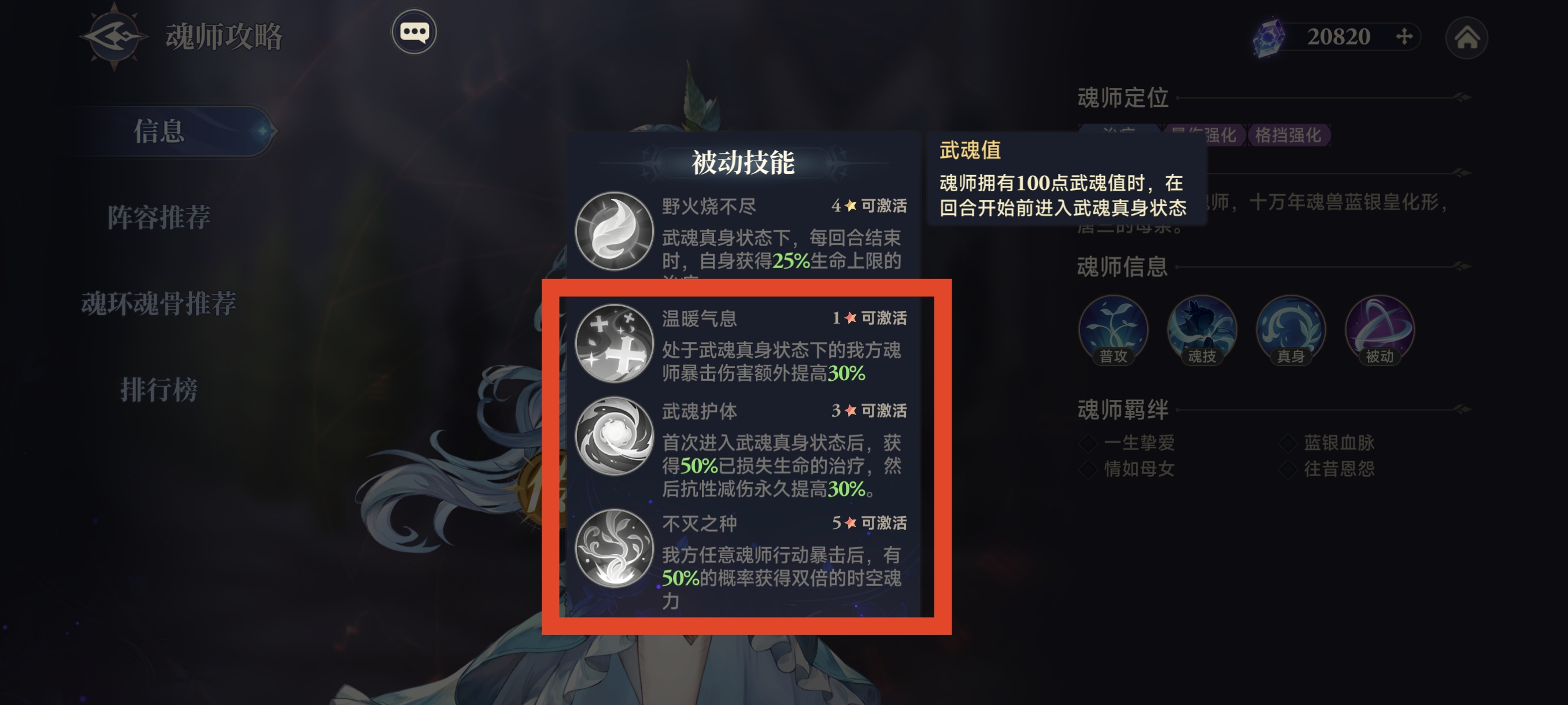 而红5天赋在我方全体暴击后,有50%几率获得双倍魂力,再次增加我方大招施放频率。