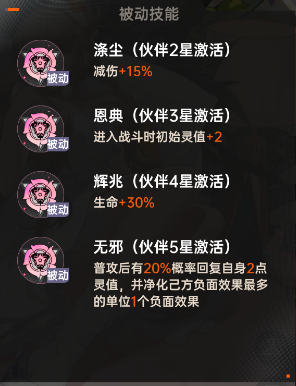苏恩曦的技能是一个标准的辅助奶妈类型,虽然奶量不是很多,但最主要的是驱散1个负面效果和使相邻角色中灵值最低的一个回两点灵值,如果搭配上为了打快攻而准备的龙文的话,可以在三个回合内打出两次言灵技能。