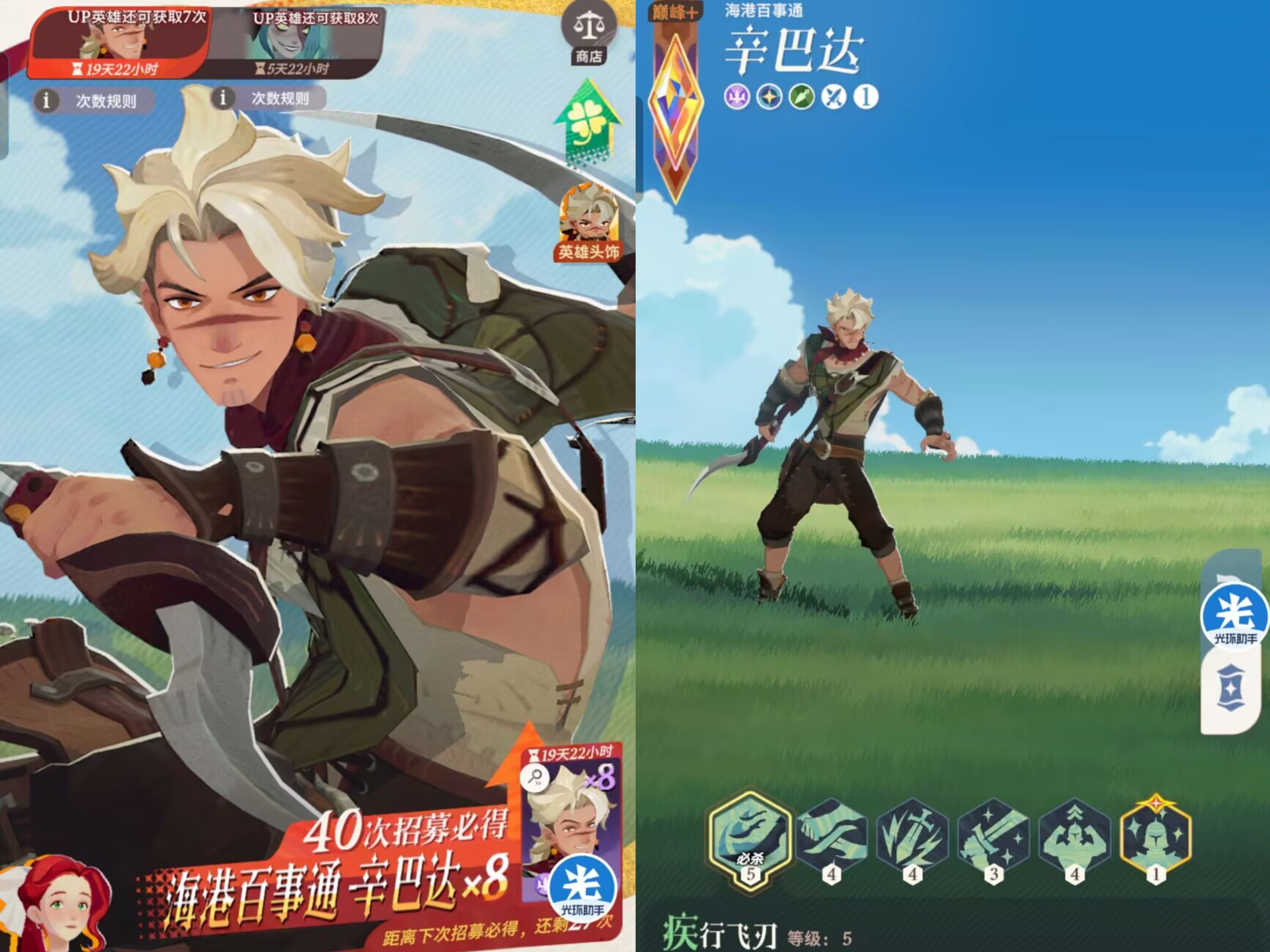 一:【辛巴达】超级详细技能解析。辛巴达定位是:耀光阵容的近战游侠。
