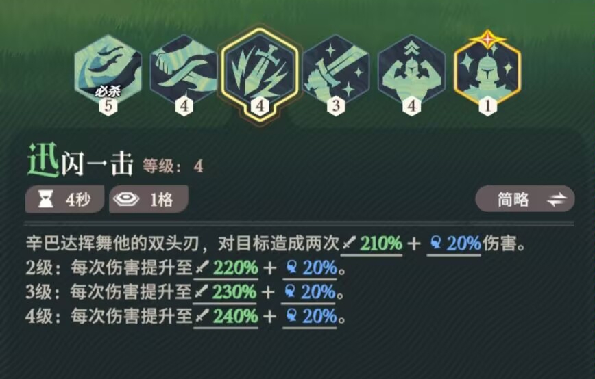 ⑥六技能:觉醒之力。主要就是提升辛巴达三技能【迅闪一击】的伤害!