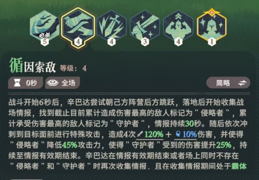 ⑤五技能:审时度势。辛巴达的核心技能。