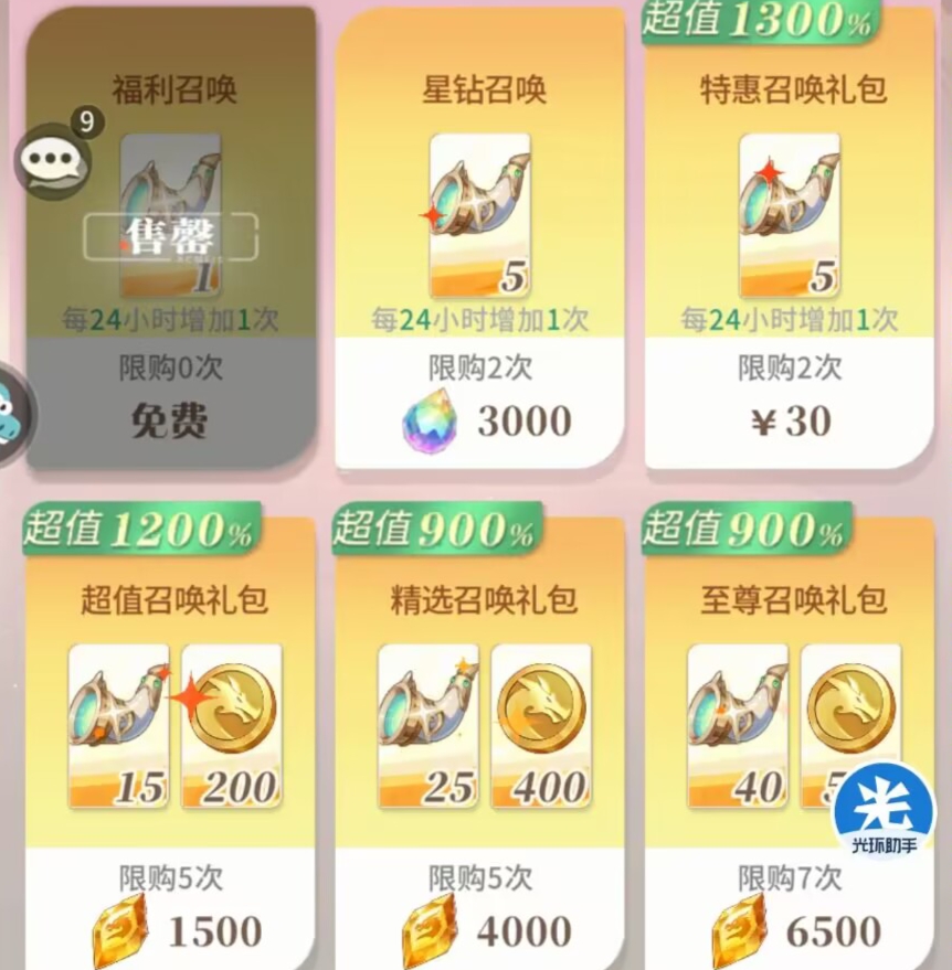 ②魔灵珍宝第一天可以购买2次3000星钻的5个【唤灵号角】。