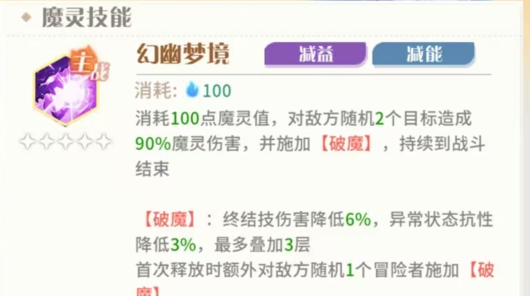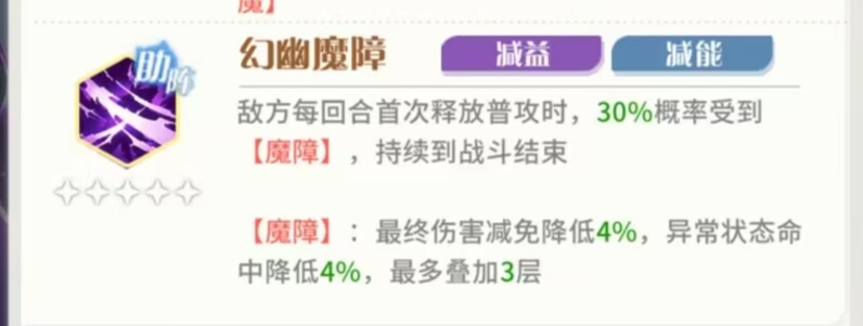 ①3星后:首次释放提升为4个目标,提升数值。并且破魔效果还会有几率额外叠加1层,同时解锁新机制降低目标的神器减免和魔灵伤害减免。
