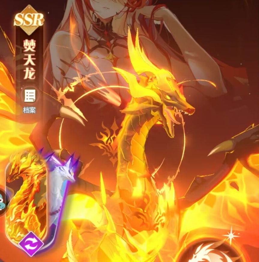 ②焚天龙5星后:出场几率提升为60%,每回合可以触发2次,并且拥有10%的回血能力,减伤效果提升为5%,最大为4层。