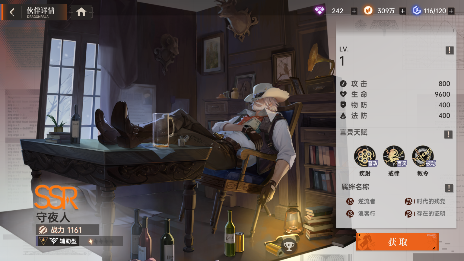 现在大体看完了守夜人的技能,那我们就要开始进行龙文的搭配了,可说实话,守夜人的龙文搭配就只有一套,他的伤害倍率也不太够看,因此将守夜人的龙文搭配给限制住了,如果守夜人的技能倍率或者升星之后的伤害能上一个台阶的话就可以考虑去走一套输出类型的龙文玩玩了。