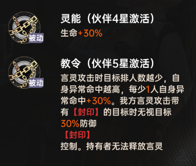 最后是这个【易伤】,这个的加成比炼金武器的那个纯粹火元素加的还要多,同时也是守夜人技能挂负面效果中概率最高的了,哪怕升到三星后再多出一个【静止回灵】(使敌方无法获得灵值)也没有这个的概率高。