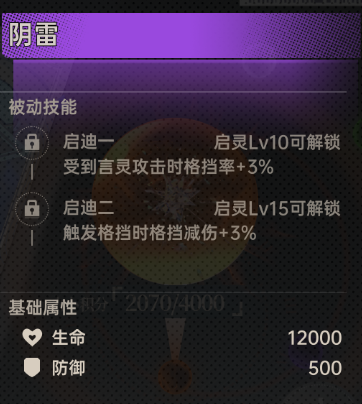 启迪讲解:这个启灵有点比较明显的是给主角用的,因为只有主角的效果是通过格挡率来提自己肉盾的,其他角色也是一样可以使用来提升坦度的,不过大族长我是不怎么推荐了。