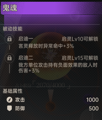 启迪讲解:这个也是给能挂负面效果的角色去使用的,而且只要是可以挂负面效果的都可以带这个启灵去使用的,这个启灵好像也是个启灵的下位替代,当我看到他的效果的时候我就明白了,还是一样啊,各位兄弟们如果没有高级启灵的话就用这个代替吧。