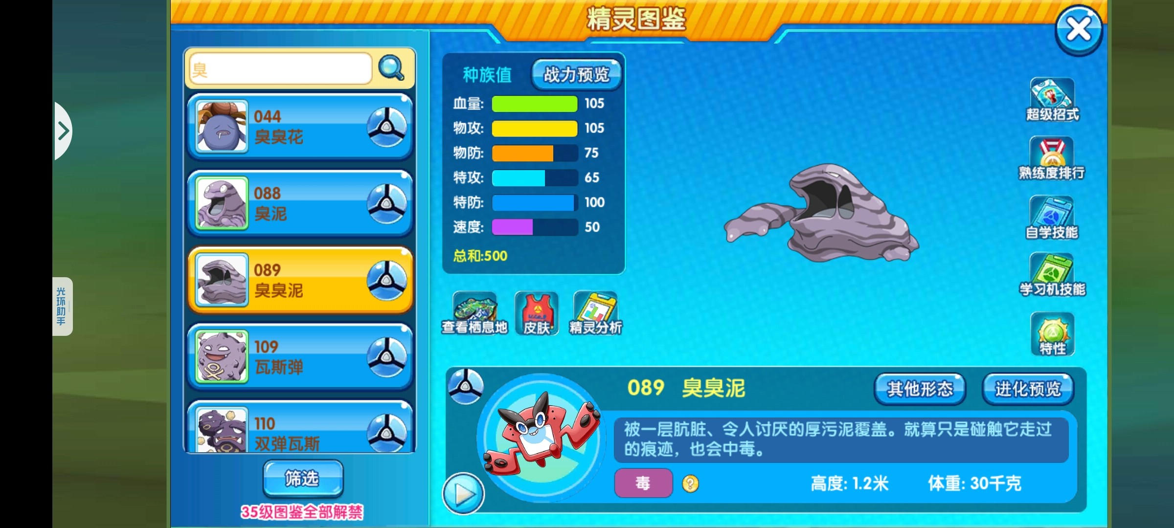 臭臭泥全身都是烂泥,明显进化后嘴巴变得更大,更凶了,双臂变得更长了。身体可以轻易钻进铁门,井盖等物体。会散发出非常恶臭的味道,人们踩到了臭臭泥就会被攻击,认为人们侵犯了它的领地。生活在下水道、*场等脏乱地方。平时躺着地上人们不容易看到,一不小心踩上去会受到他的猛烈攻击。