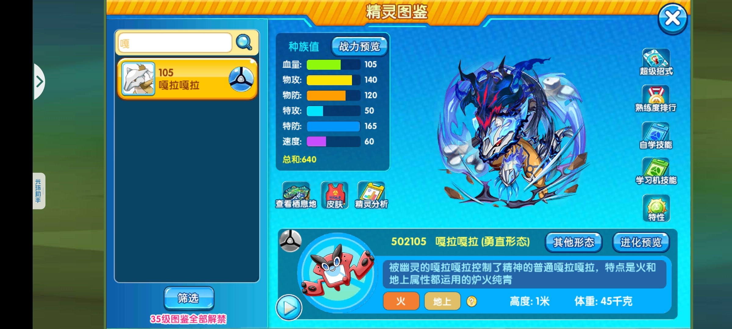 复刻中嘎啦原来很强力,但是后期随着版本更新有些落伍了,后来策划让普通形态和闪光形态融合,成为勇直形态,也是非常给力。
