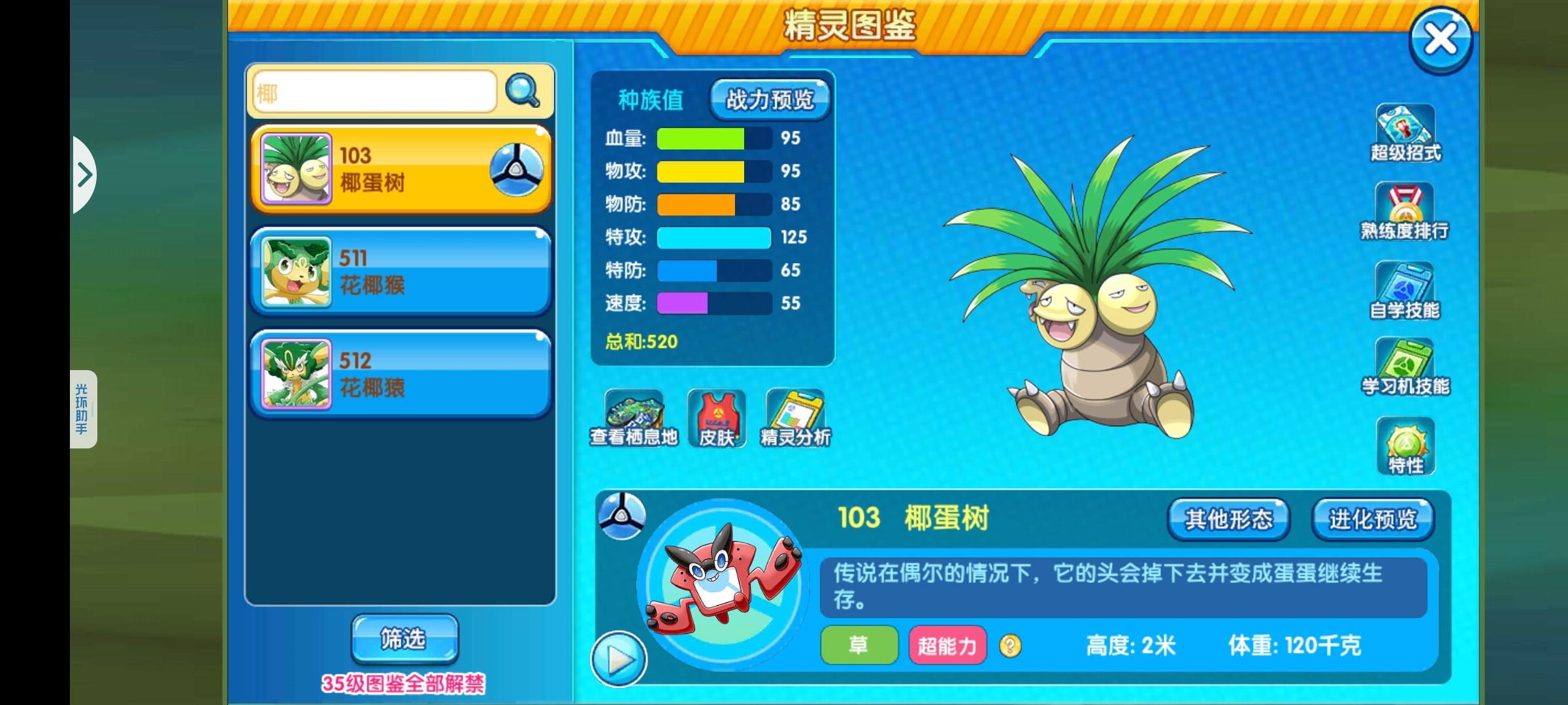 和很多新形态一样。阿罗拉椰蛋树在复刻中属于氪金宠物,但是强度不高,主要以前当套路宠玩,限定眼镜+长颈特性,伤害非常高。可以和对手一换一。