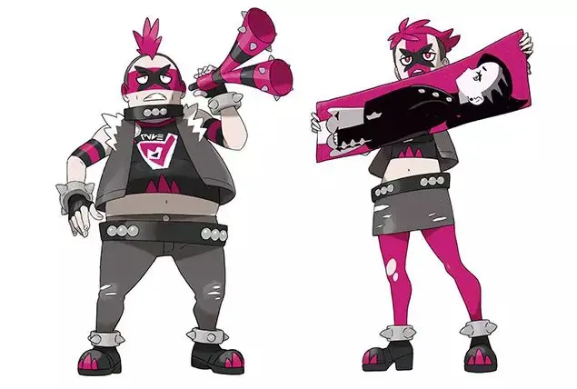 伽勒尔地区有些复杂,明面上是给玛俐加油助威的呐喊队。会在道馆挑战的旅程中不断冒出来,对主角等人百般阻挠,他们为了让玛俐登上冠军宝座而行动,对其他挑战者做出占据旅馆、抢夺交通工具、在对战中大呼小叫等种种妨碍道馆挑战的行为。