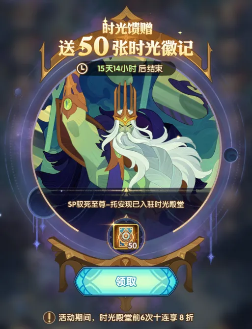 ◇活动简述:活动期间达到16-1的冒险者可以免费领取50张时光徽记,同时时光殿堂中将开启限时优惠,前6次十连抽将享有8折优惠。