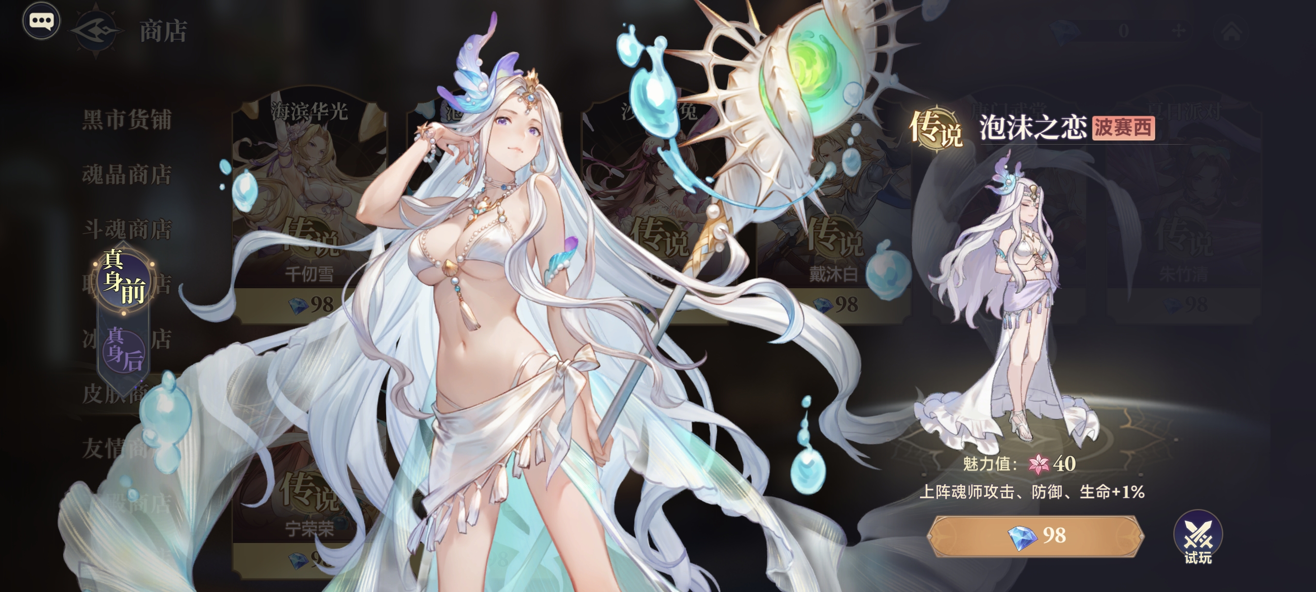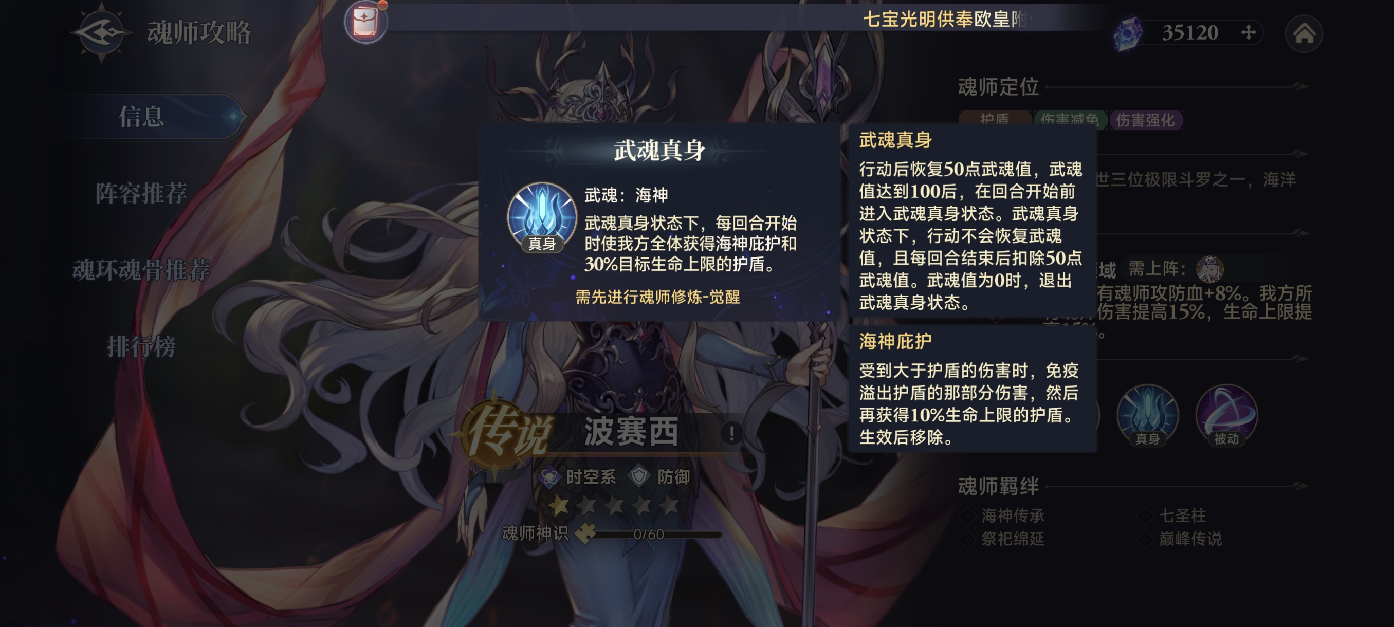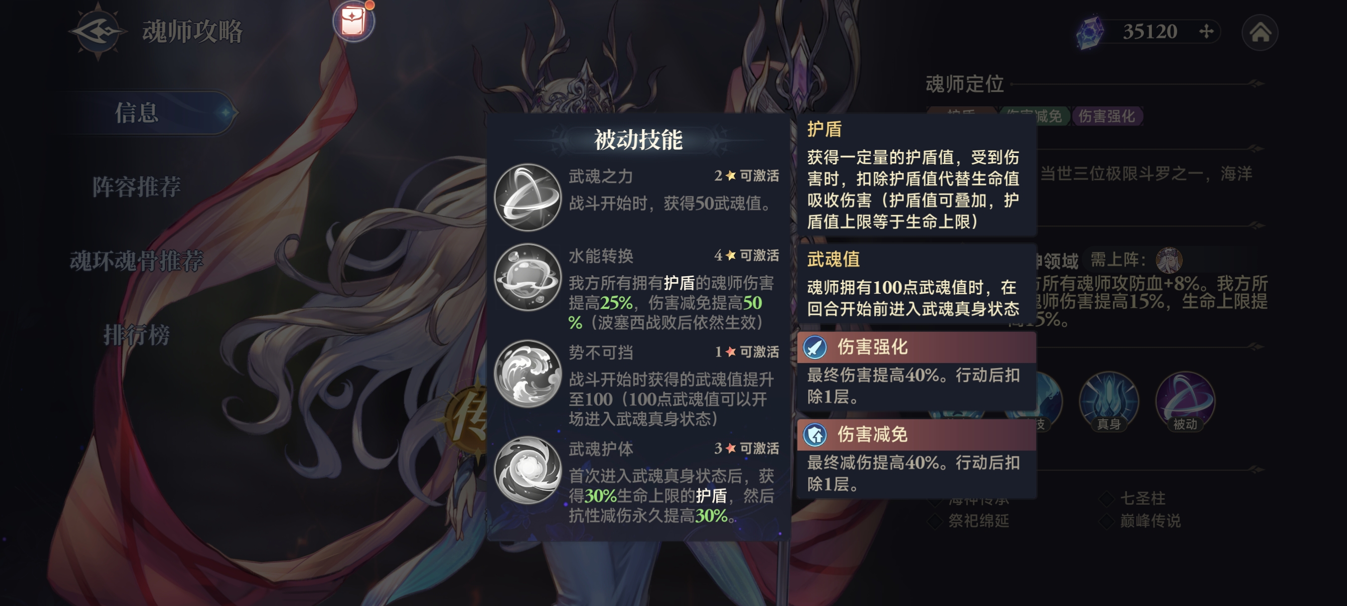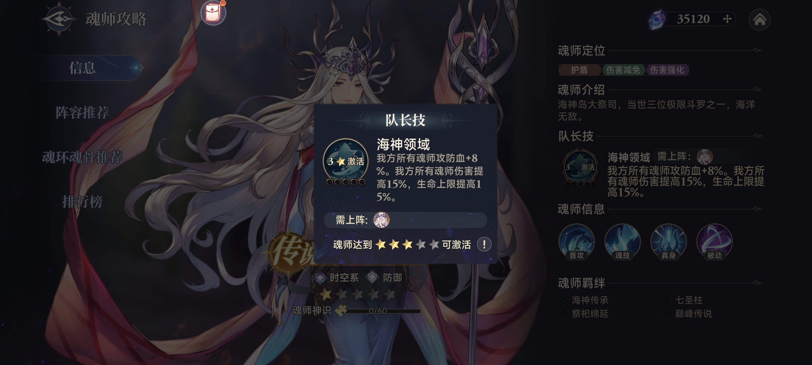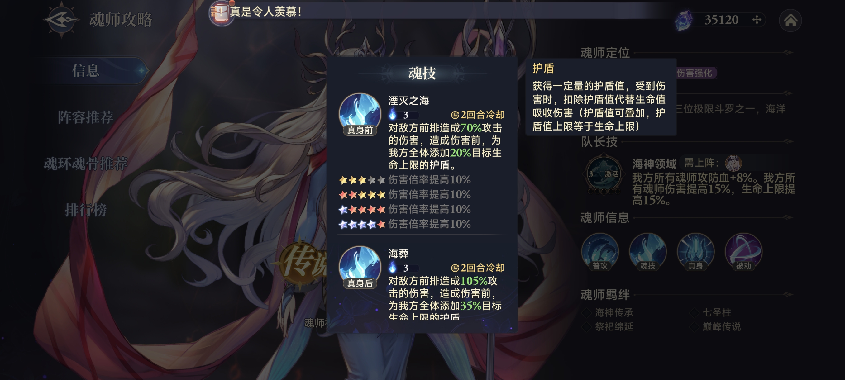 结合所有时空英雄通用的红1开场满武魂效果,开场就能直接进入武魂真身,然后为全队附加【海神庇护】,什么千仞雪开场秒人完全不存在好吧!当然真身下每回合限1次!