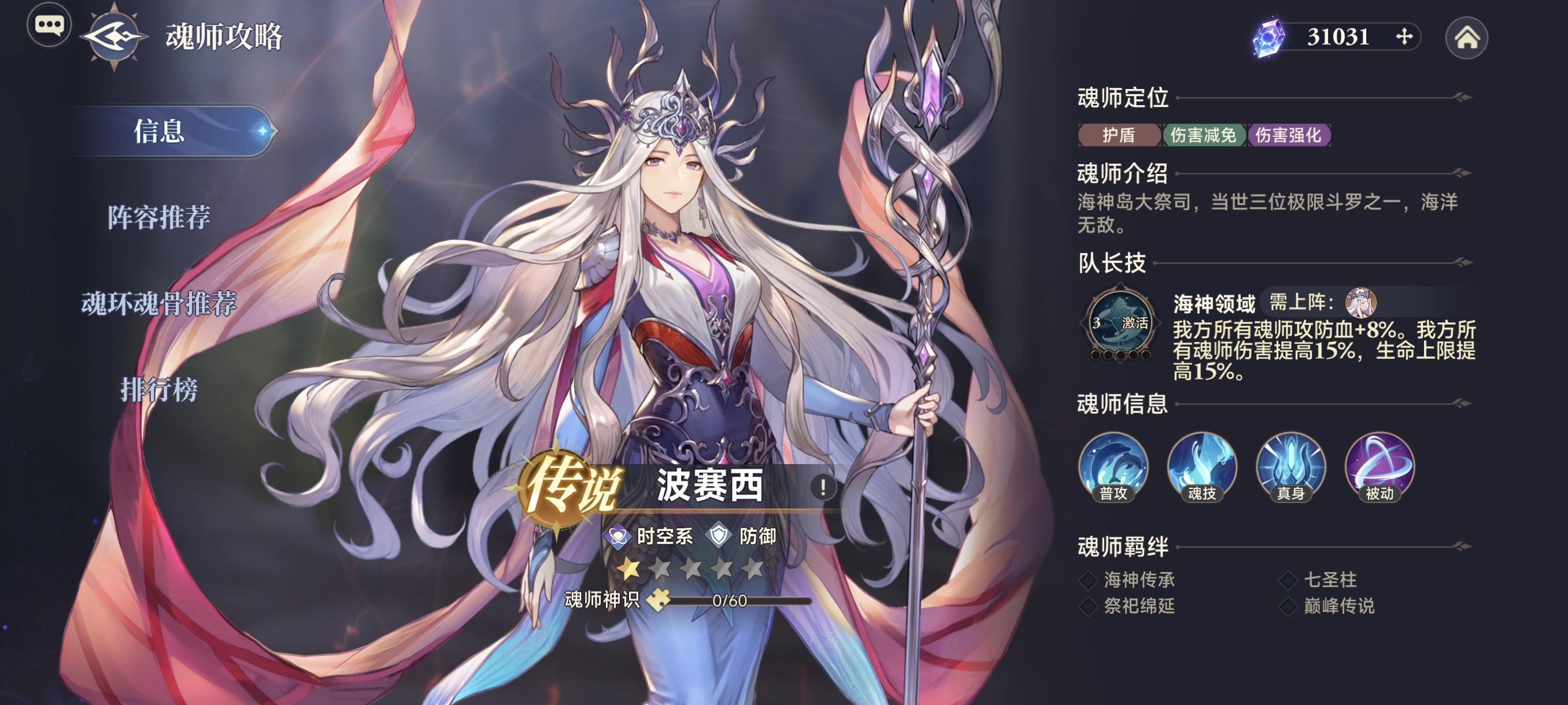 波塞西是纯辅助定位,自身伤害可以忽略不计,武魂技再次加强全队的护盾和减伤能力。