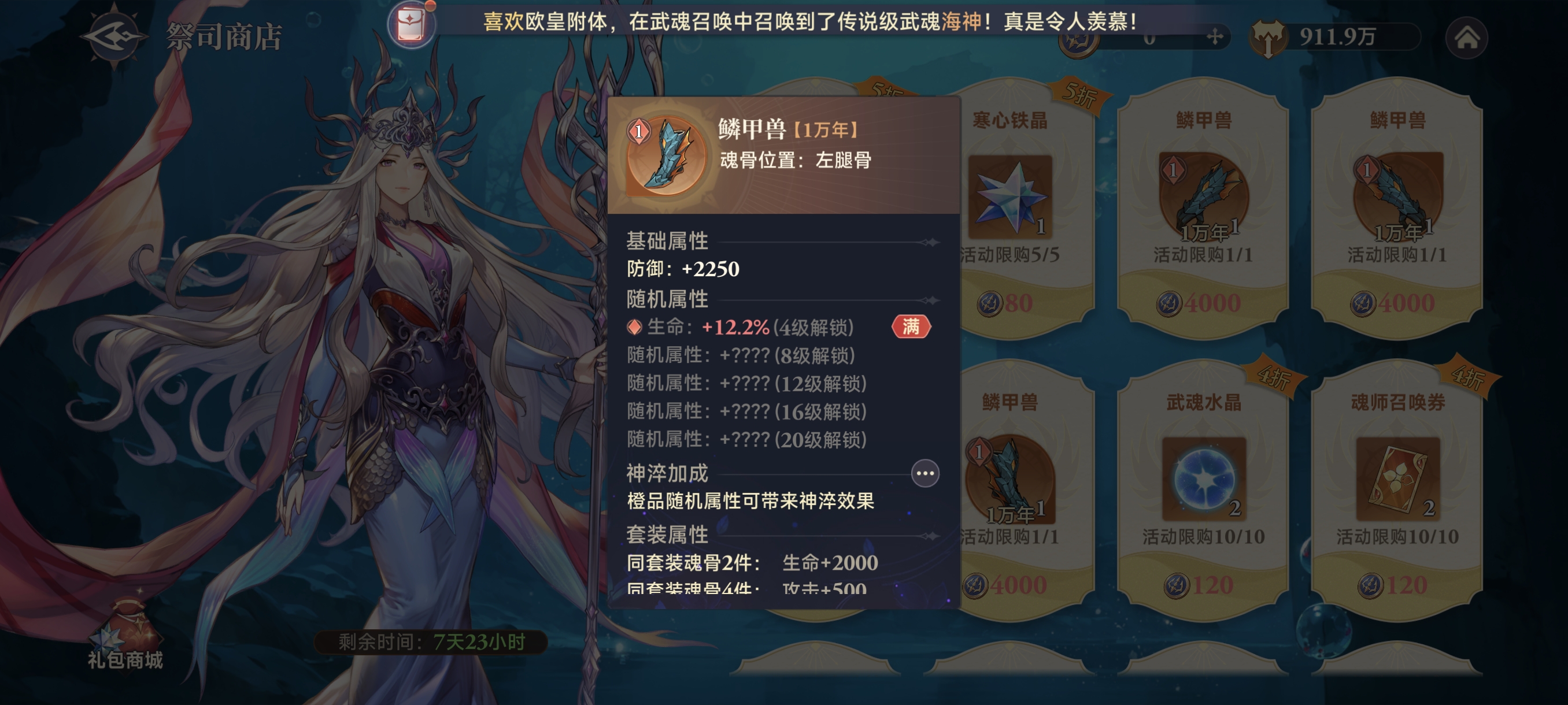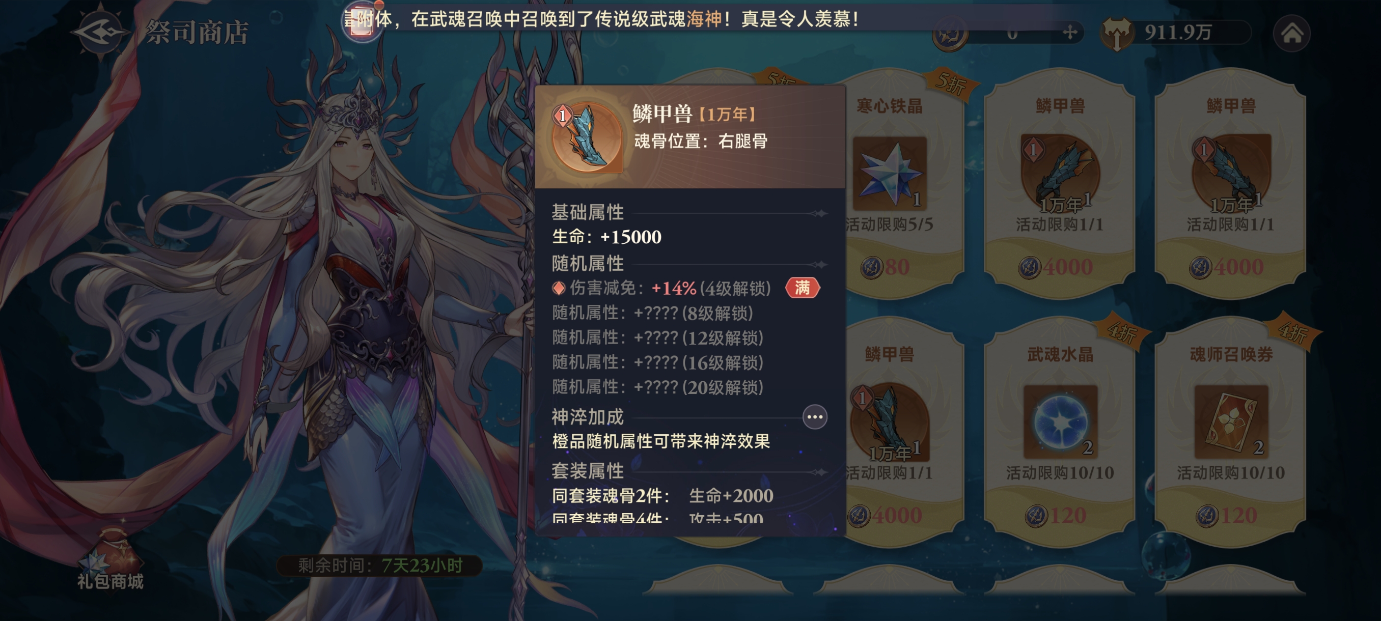 三、魂环与魂骨推荐推荐魂环:1甲盾,2甲盾,3甲盾,4甲盾,5甲盾