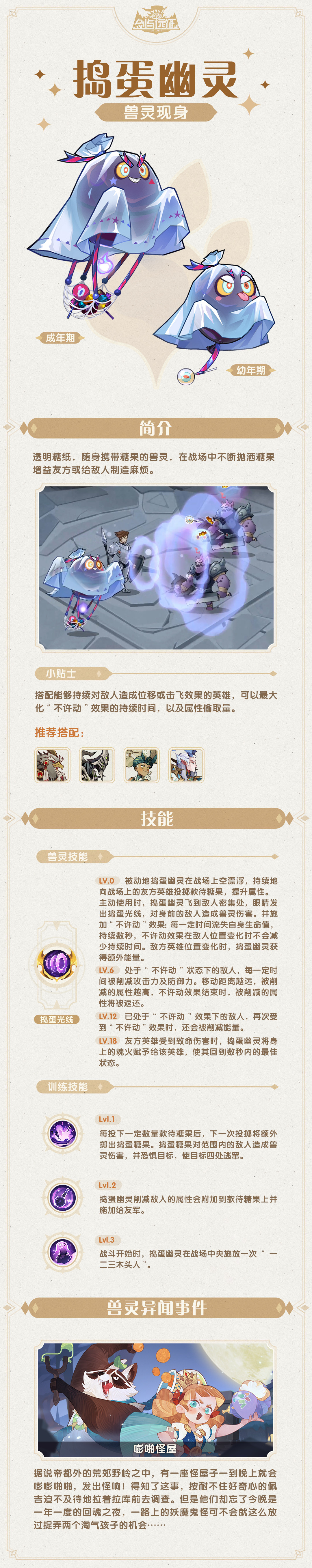 【兽灵图鉴】全新卓异兽灵-捣蛋幽灵 即将来袭~光环小G发布于 2024-10-21关注亲爱的冒险者们伊索米亚近期将会迎来一只全新的卓异类兽灵快来一起看看吧!兽灵档案兽灵战斗战斗特效展示全新兽灵 捣蛋幽灵 即将登场敬请期待~