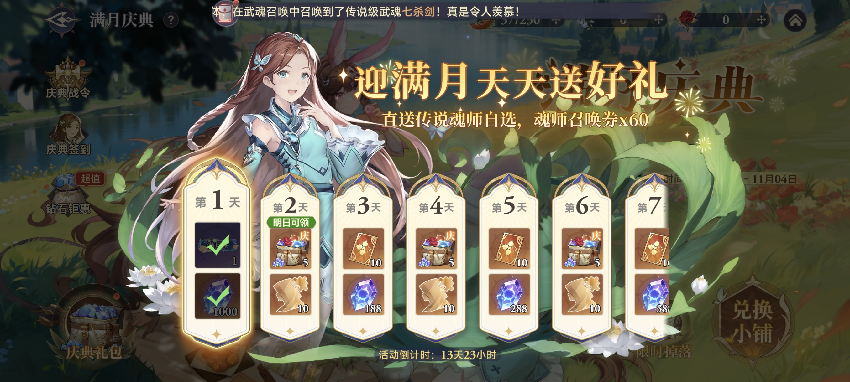 活动14天,共计可白嫖700魂晶+140白色铃兰。
