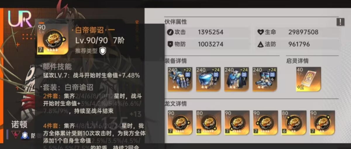 六:【路明非】龙文搭配。①诺顿:白帝套装(提升坦度)