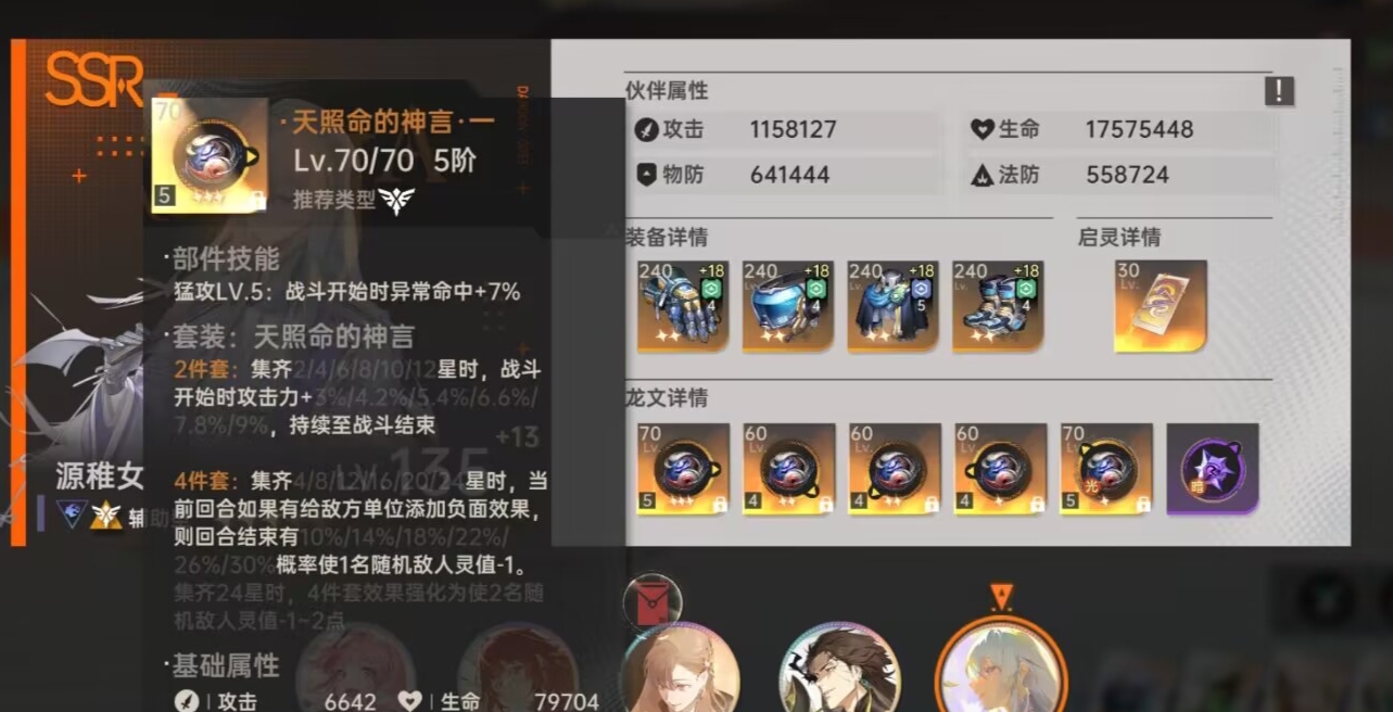 或者上源稚女,源稚女可以考虑放前排,给敌人挂噩梦效果,让敌人无法行动,同时降低敌人的灵能和抗暴率以及命中。