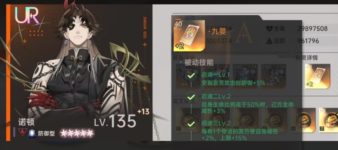 五:【路明非】启灵搭配。①诺顿:九婴(提升减伤和防御加强自身的坦度)