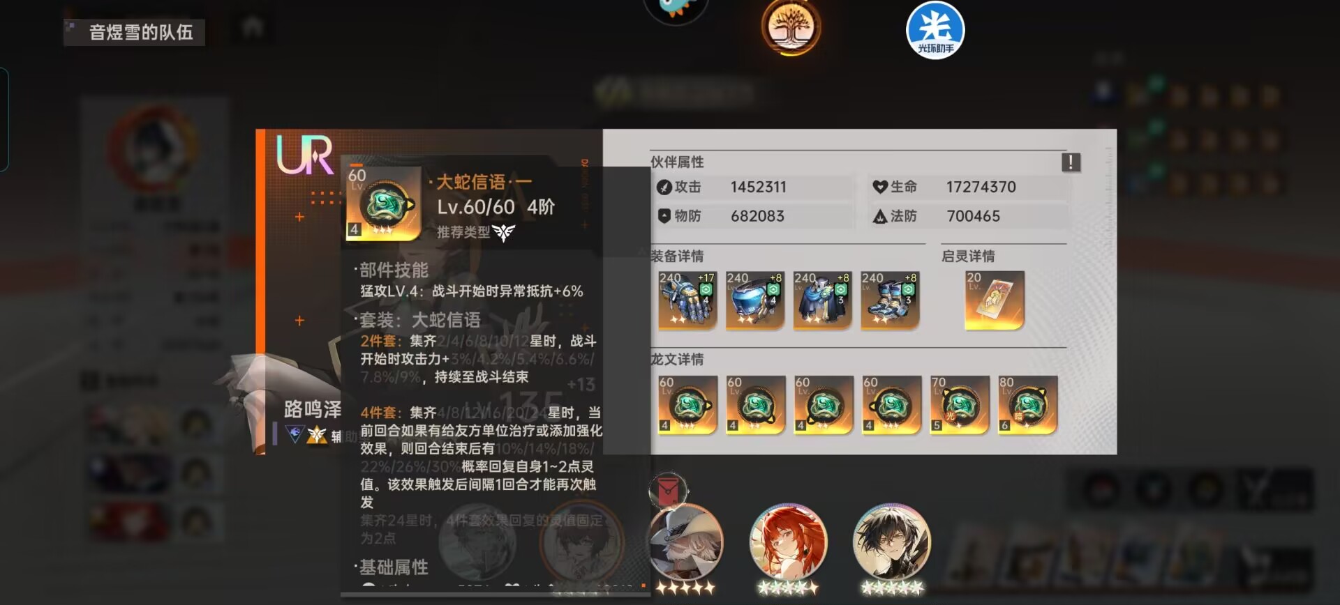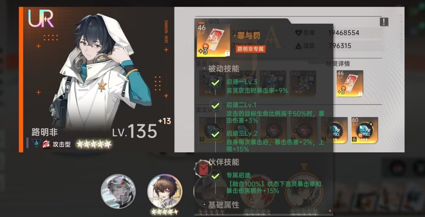 前期阶段路明非+路明泽配合守夜人和零特别好用,守夜人配合路明非攻击中排,给敌人挂封印和易伤,提高路明非的输出。