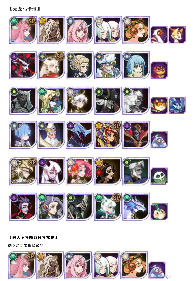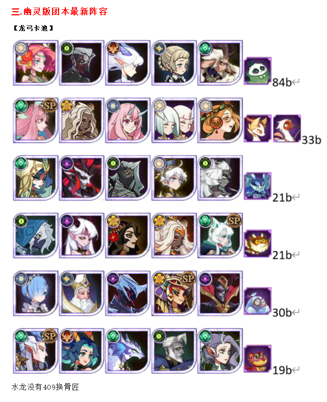 一只能左右团本排名的新宠物!嘭啪怪屋作业合集&幽灵团本卡池更新(文章有瓜)剑与远征 - 攻略星发布于 2024-10-24关注 本次文章分四部分1.幽灵试炼作业2.幽灵点评&团本上场逻辑3.幽灵版团本最新卡池4.幽灵引起的轩然大波 一.嘭啪怪屋作业合集宠物试炼活动比较简单,只要自身卡池解锁单卡了,即便单紫,都能以309-60练度上场。关卡总共25关,但只要星星数拿到33颗即可拿满奖励。 二.新宠物 - 幽灵 解析0级:被动,提升友方攻击 主动,敌人密集处施加“不许动”效果,生命流失(PVP配聚怪卡) 3级:3秒范围恐惧 6级:削减“不许动”敌人攻防,结束后返还 9级:6级技能削减敌人的攻防会转移给友军,至多40%(BOSS战核心技能) 12级:削减能量 15级:开局施放“不许动”(快速启动) 18级:友方英雄濒死时回溯4秒内最佳状态,最多触发两次(PVP门槛,三星时魔藏品效果) 新阵容伤害图 出伤逻辑:1.BOSS不会动,所以幽灵偷的攻防会最大化2.冰魔降低BOSS的化解,偷取的时间从5秒提升到8秒 极限可以打到30B ※秋婶下急速家具,注意看图没有九红顶配比原来带金瞳/仙鹤最高伤害多了9~10B高伤逻辑:18级的两次保命技能使得双子足以开出第三个大招 四.圈内大瓜幽灵的上线,给正在团本期间的玩家们来了一次巨震。这次影响的不仅是团本的伤害排名,还有更离谱的是,毁了国服和国际的一些顶配号。 原因就是少部分高级宠物在团本中经常打不出伤害。幽灵也是如此,每高一级,幽灵的精通会提高,导致宠物的技能轴随之变化。即使提升英雄的数值去适应也是一件非常繁琐的事情,还不如保留在18级更容易出伤。宠物金瞳也是其中一个反面例子。 正因如此,国服和国际服的一些顶配号在更新后直接把幽灵拉满36级,导致在这次团本中没有了用武之地,其中的受害者也包括我们国服第一的小姐姐。盒子君把这件事说出来并非引发仇恨,而是希望借此事件,莉莉丝能重视起来并改善,如: 1.出洗宠物等级的道具2.完善宠物的技能机制,使得18-36级这个阶段的宠物出伤更稳定一些。 综上,18幽灵YYDS,36幽灵永无翻身之日。转载自:剑与远征小屋