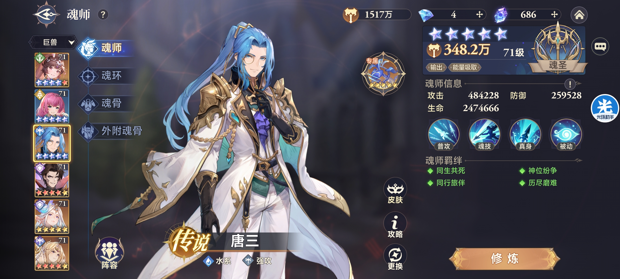 《武魂所需》『唐三』专武尽量5星,星级彩五更佳!『小舞』3星,其他的尽量3星