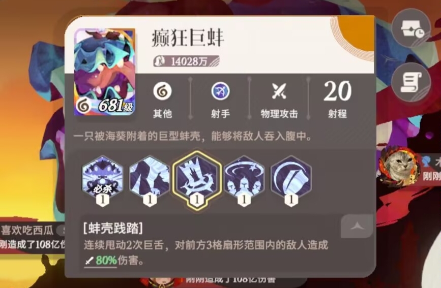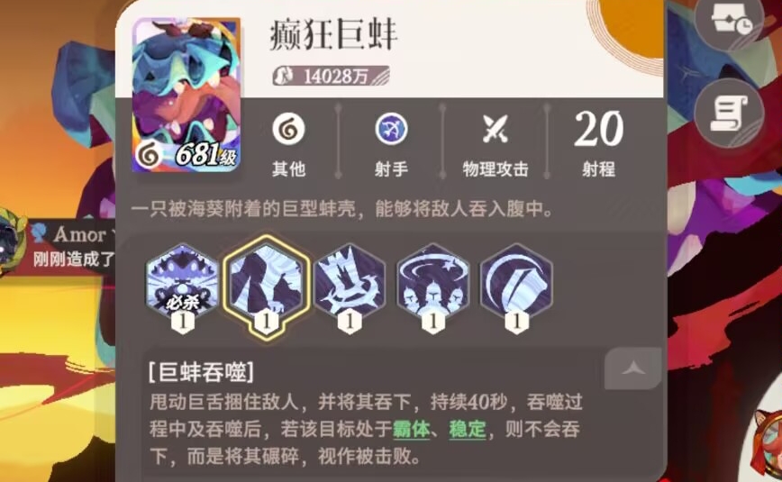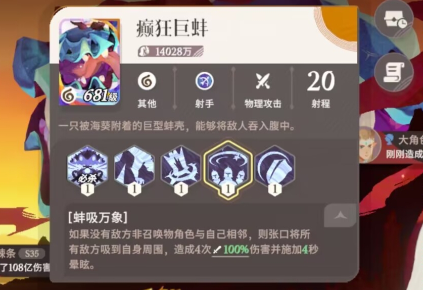 ②【癫狂巨蚌】一技能为:巨蚌吐噬。