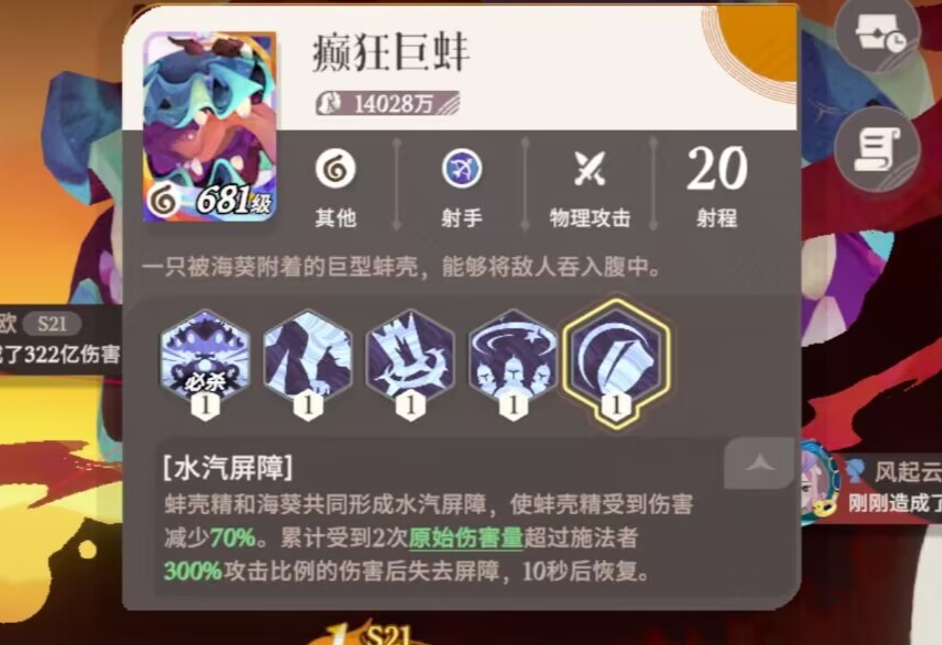 ⑤【癫狂巨蚌】四技能:水汽屏障。