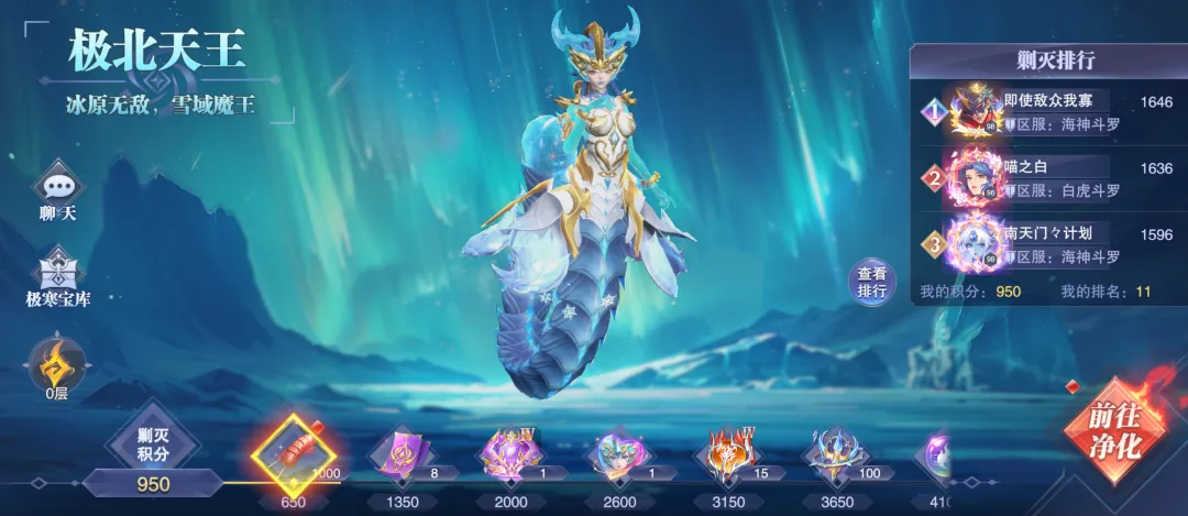 首先这个活动有一个累计积分领取奖励的规则,维一今天在没有买任何礼包的前提下,打完11点之前的两个阶段boss拿到了950分,那么如果每天按时把每个阶段的boss都给打完大概能拿到1000多一点,而活动持续3天,这个积分也可以给不准备氪金或者消费的朋友参考一下。(2600分的冰帝玉鉴是一个相对比较重要的资源,大家可以特别关注一下)