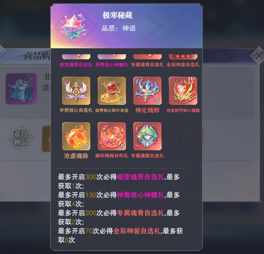 接着便是此次活动的核心秘藏部分了,这次秘藏的关键奖励分别为300抽保底的SP冰帝右臂进化魂骨,130抽保底的核心神髓,200抽保底的SP奥斯卡躯干专属魂骨,所以基本大家如果要投资的话,就看这三项资源到底合不合大家的意了。(新区还有一个160抽保底的天使圣剑的晋升核心器源)