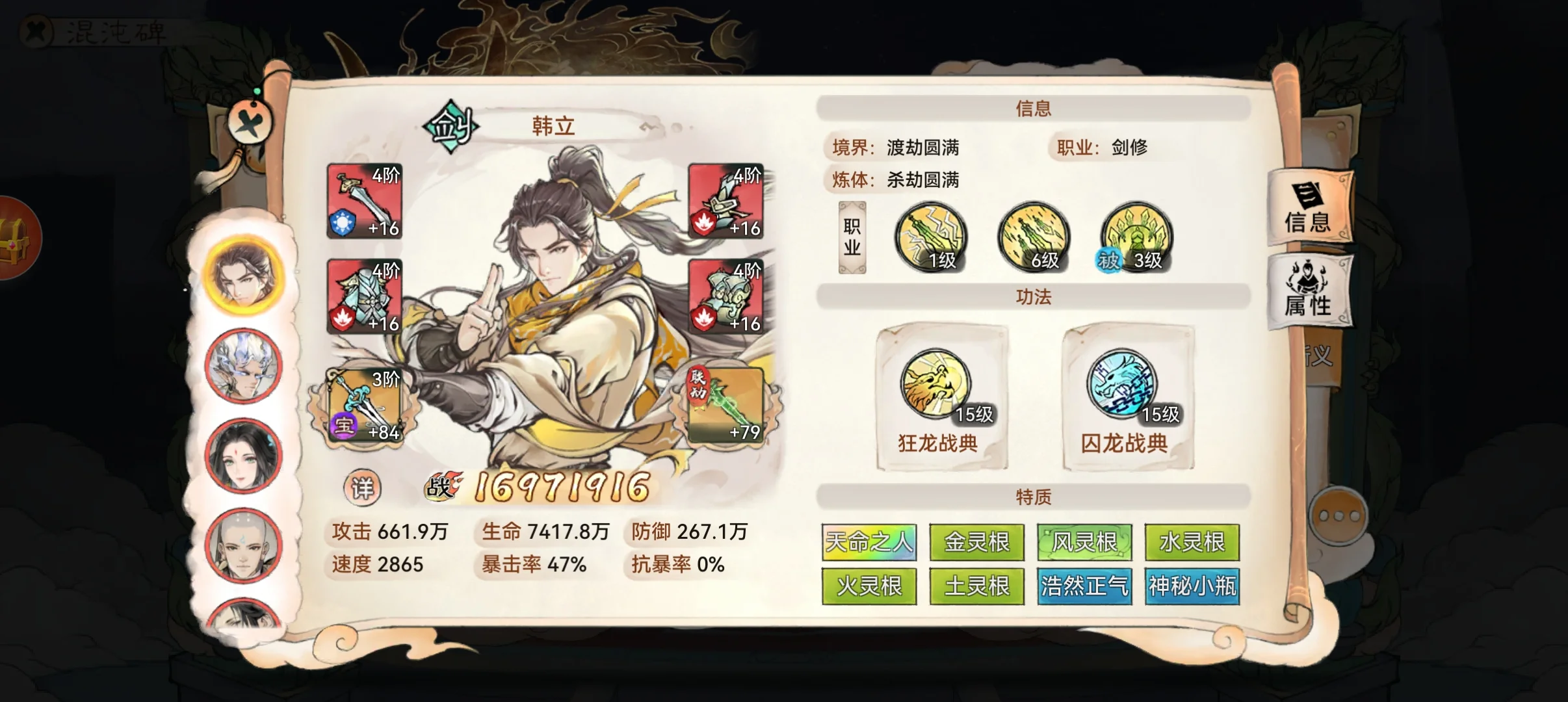 龙人也很强,本来自身也有锁血机制,也可以防止囚龙,不会被秒。总之这两个都可以!有韩立的玩家可以优先上韩立。